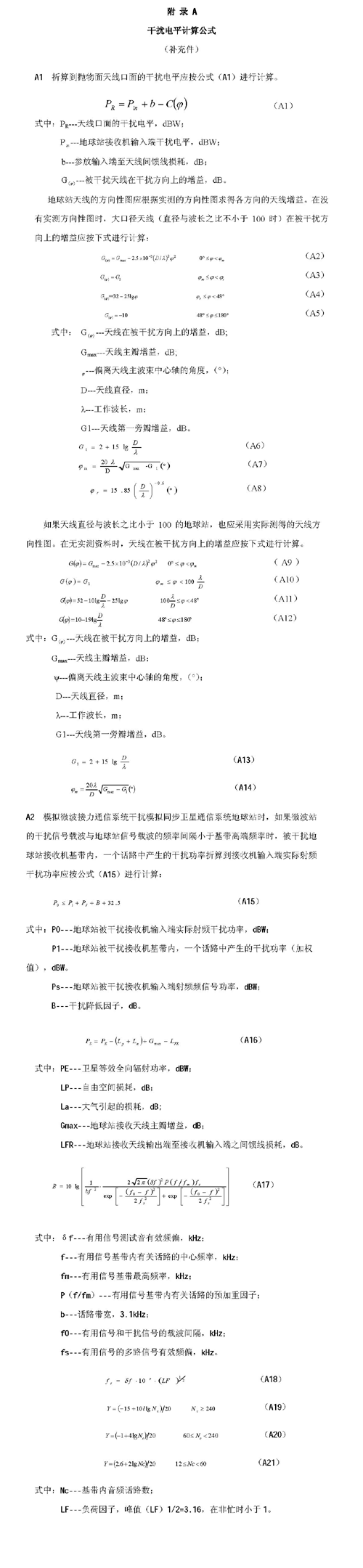 B1.3.3 天线口面处干扰信号电平PR的折算应按公式(B1)进行计算。